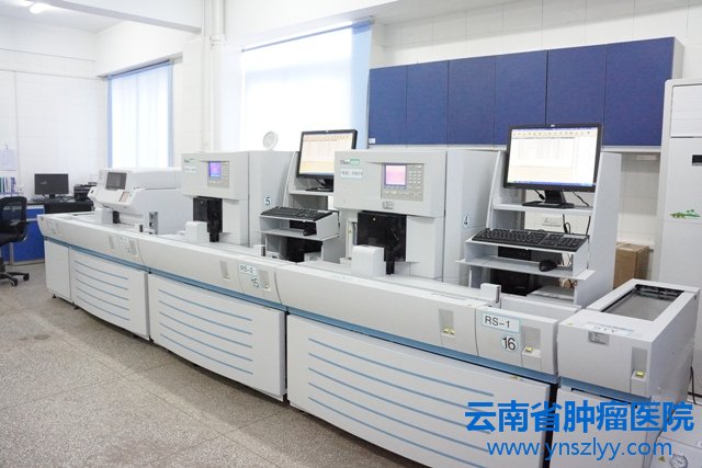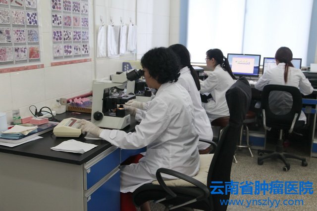 暨昆明医科大学第三附属国产av检验科成立于1992年12月,是集临床、科研、教学为一体,以肿瘤诊断和疗效监测为特色的综合性医学实验室。现有各类专业技术人员40人,其中高级职称2人,中级职称11人,初级职称27人;硕士6人,在读硕士8人,本科22人,专科4人。