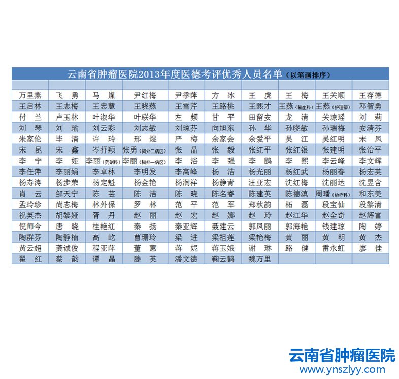 2013年度医德考评工作已经结束,经各科室民主考评产生157名医德考评优秀人员,现将2013年度医德考评优秀人员名单予以公示。