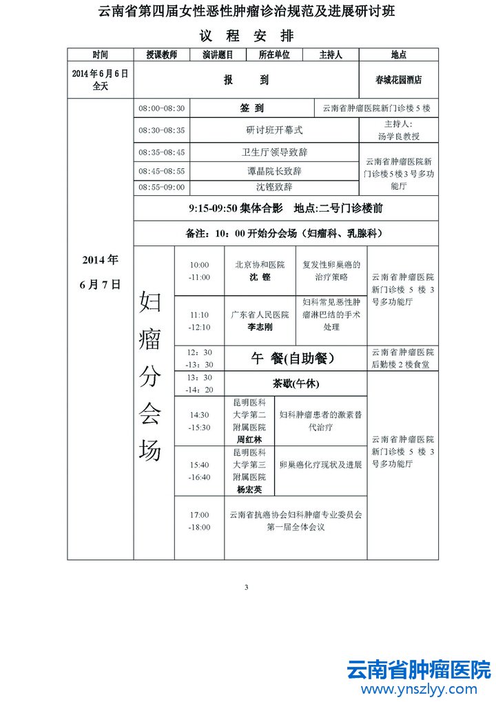 (昆明医科大学第三附属国产av)妇瘤科、乳腺科将于2014年6月6日-8日在云南省昆明市联合举办云南省第四届女性恶性肿瘤诊治规范及进展研讨班。
