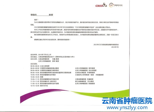 2015年CSCO恶性黑色素瘤学术巡讲邀请函