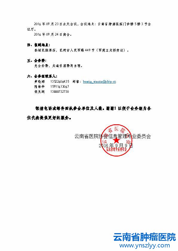 云南省肿瘤医�3号会议厅(门诊楼5楼)